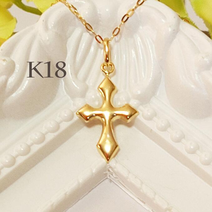 シンプルで上品なデザインが魅力の、K18(18金)製クロスペンダントトップ。