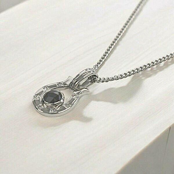 人気の馬蹄(ホースシュー)モチーフに、大粒のローズカット・ブラックダイヤモンド(0.5ct)をセンターに配置した、存在感あるメンズペンダントです。