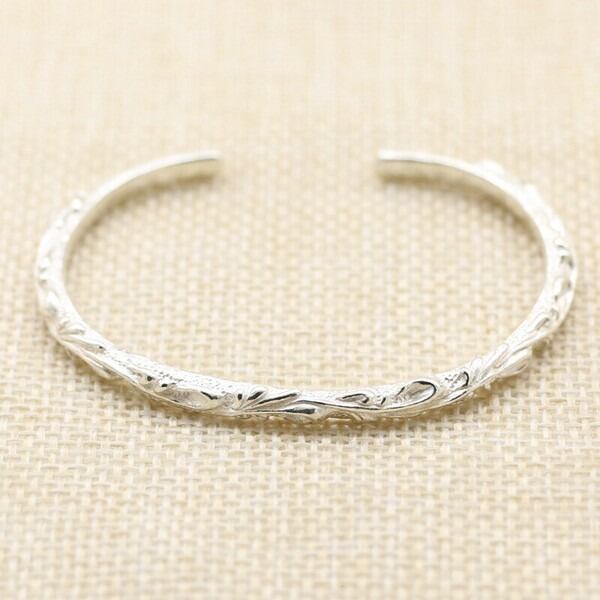フェザーとアラベスクを融合させた美しい模様が印象的な、シルバー925製バングルです。