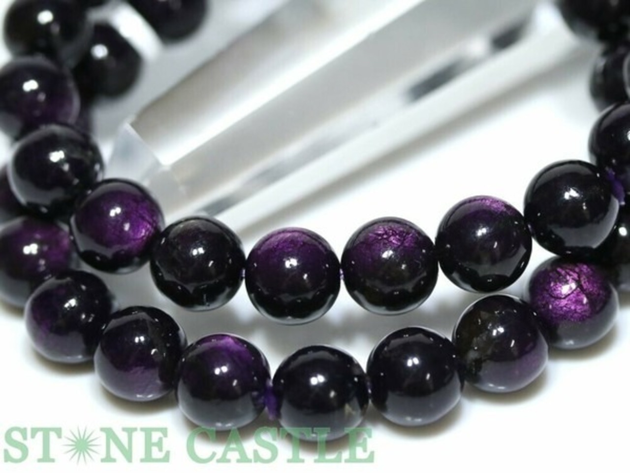 一見シックなダークパープルの印象ですが、光を受けると美しい輝きを放ち、男女問わず幅広い方におすすめできるアイテムです。個性的でありながらも上品さを感じられる天然石ブレスレットです。