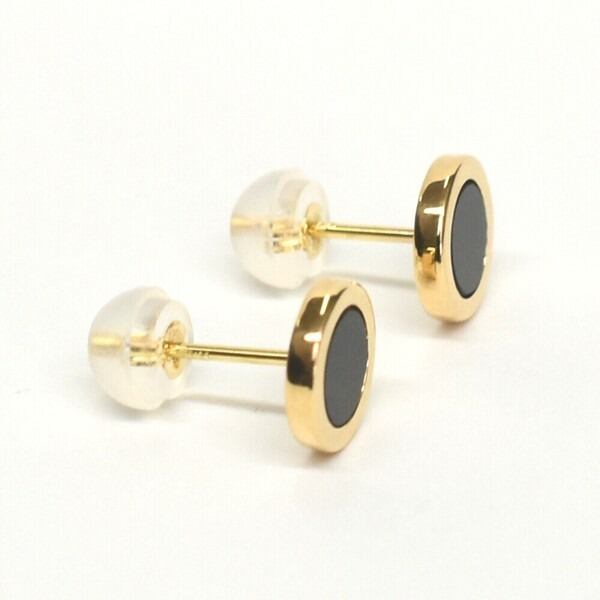 K18のフレームに深い黒が美しいオニキスをセットした上品なピアス。