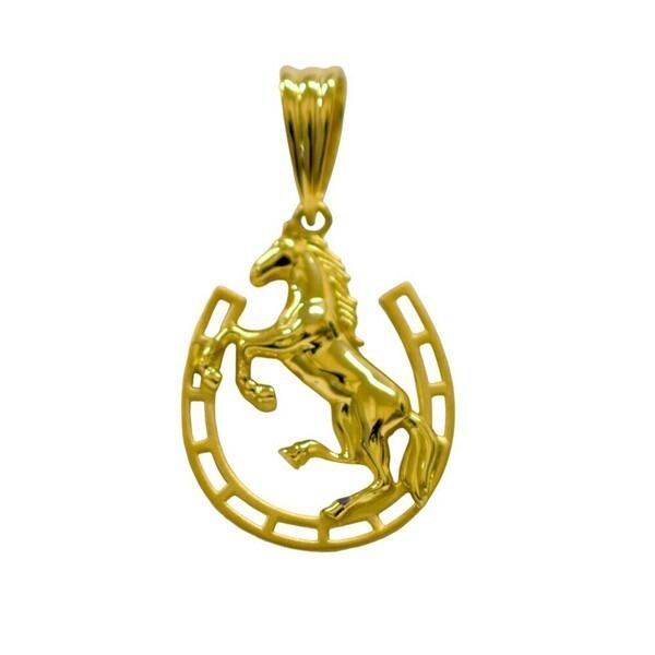 ツヤ消しの馬蹄モチーフの中に、躍動感あふれるホースのデザインを組み合わせた18金製ペンダントトップ。