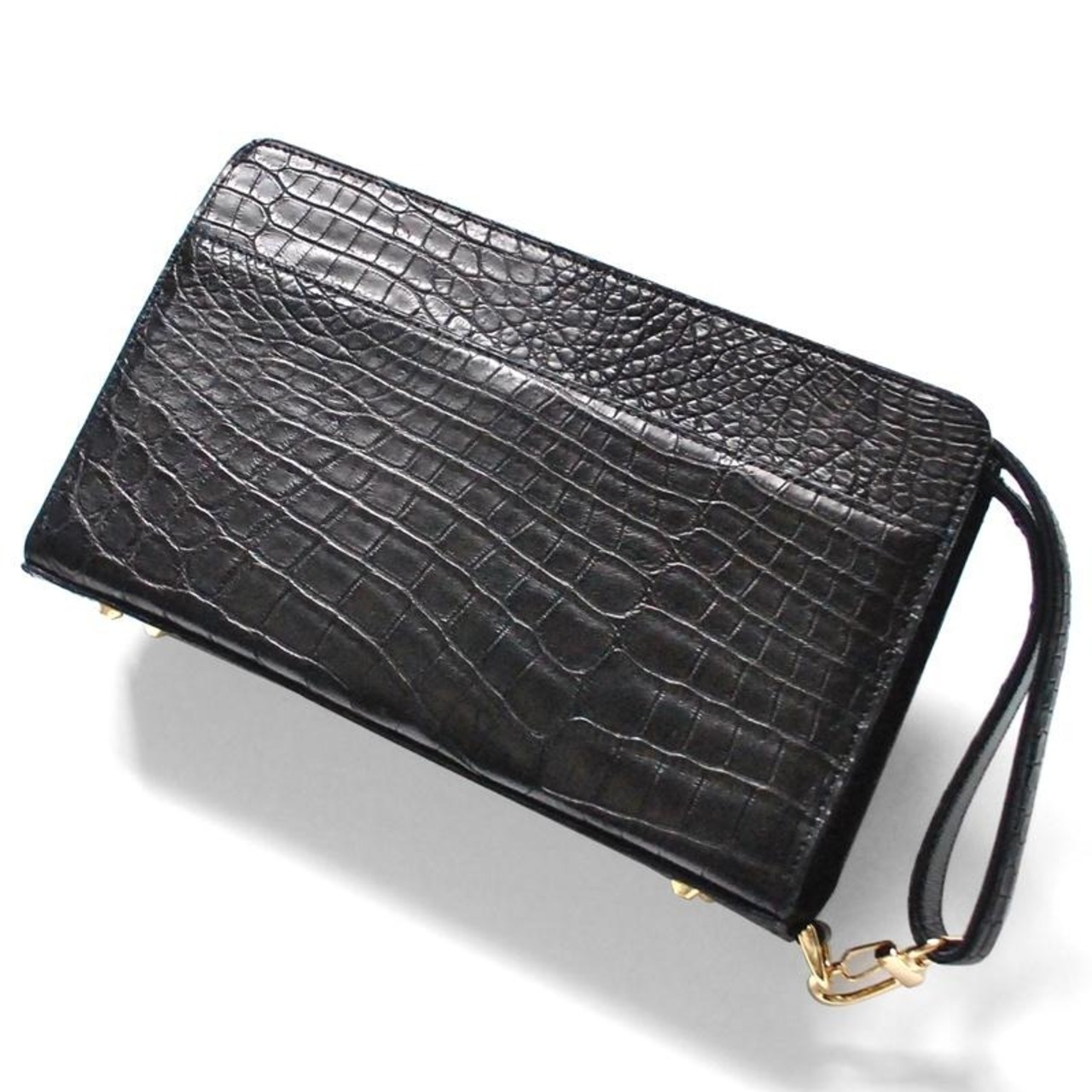 本クロコダイルを使用した日本製の高級ミニセカンドクラッチバッグ。