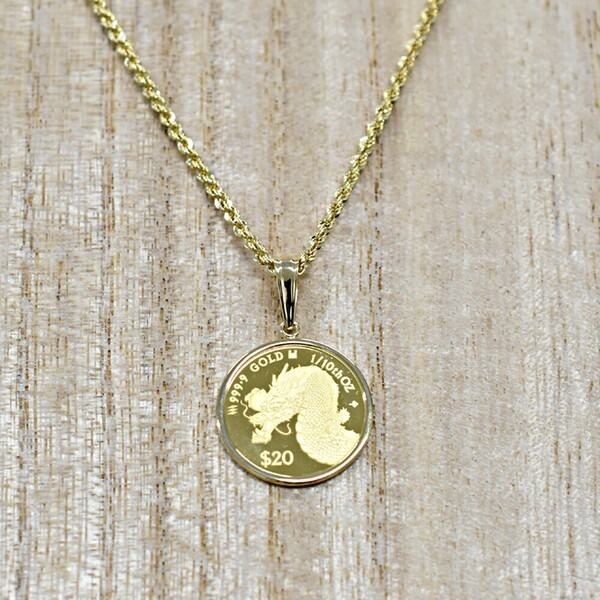 【24金】純金ドラゴンコインペンダント K24 1/10oz×K18枠 龍