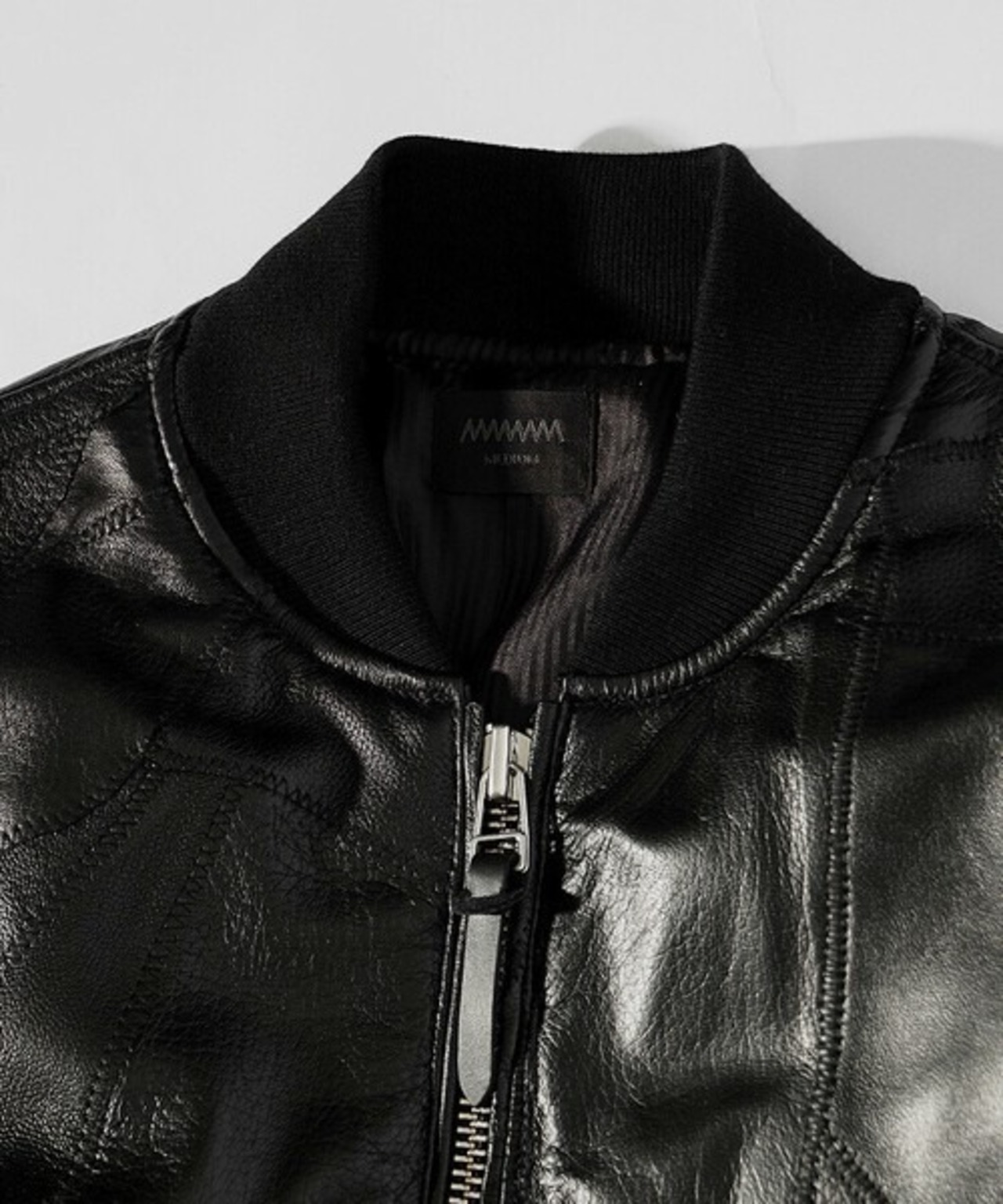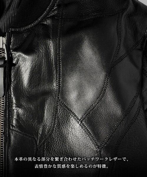 本革を贅沢に使用したパッチワークデザインが魅力のリブジップブルゾンです。
