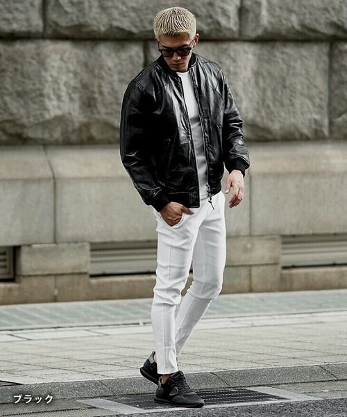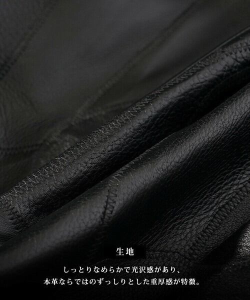 異なるレザーを組み合わせることで立体感と重厚感を生み出し、シンプルなスタイルにも個性をプラス。