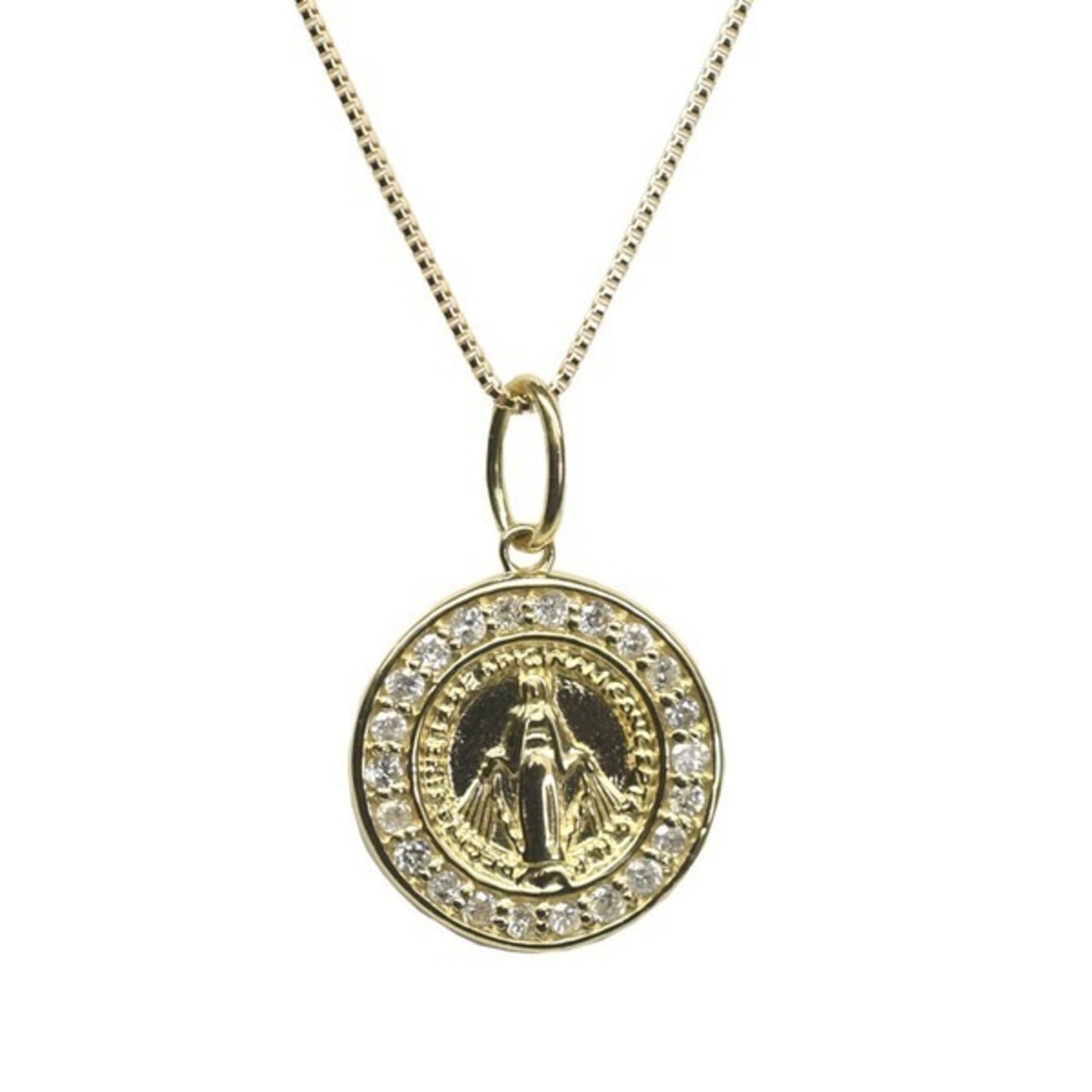 繊細に彫られたマリア像を中心に、合計22石のダイヤモンド(0.11ct)をぐるりとあしらった、上品で神聖な印象のK18ペンダントです。