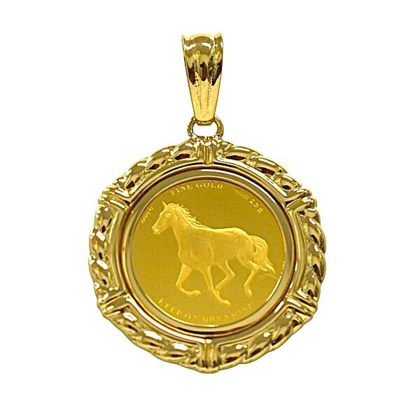 スイスの名門ブランド「PAMP社」製造のK24ホースコインを使用した純金ペンダントです。