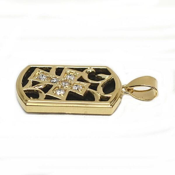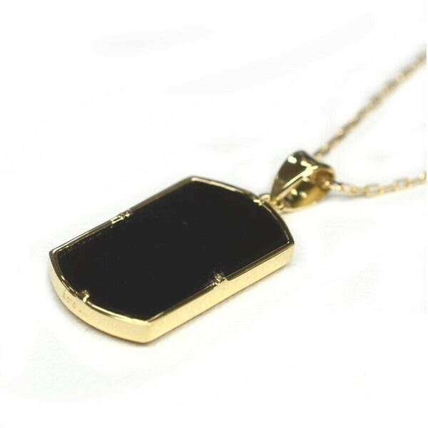 K18イエローゴールドの台座に、深みのあるブラックオニキスと天然ダイヤを組み合わせたペンダント。