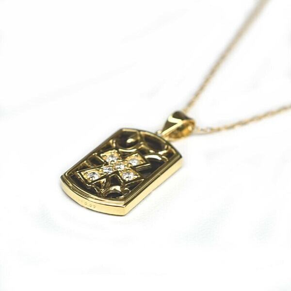 プレート型のベースにクロスデザインを施し、中央に0.09ctのダイヤモンドをさりげなくセッティング。